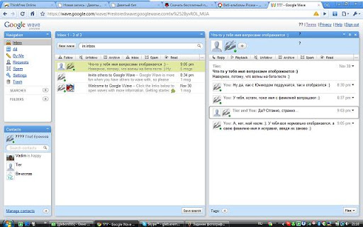 Еще из особенностей Волны стоит отметить общую с гугловской почтой адресную книгу, а так же открытый скачиваемый API, на котором разработчики смогут писать расширения и встраивания.